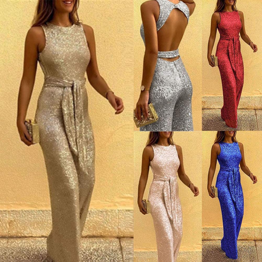 Combinaison Femme Longue Sans Manches à Paillettes – Élégante & Moderne