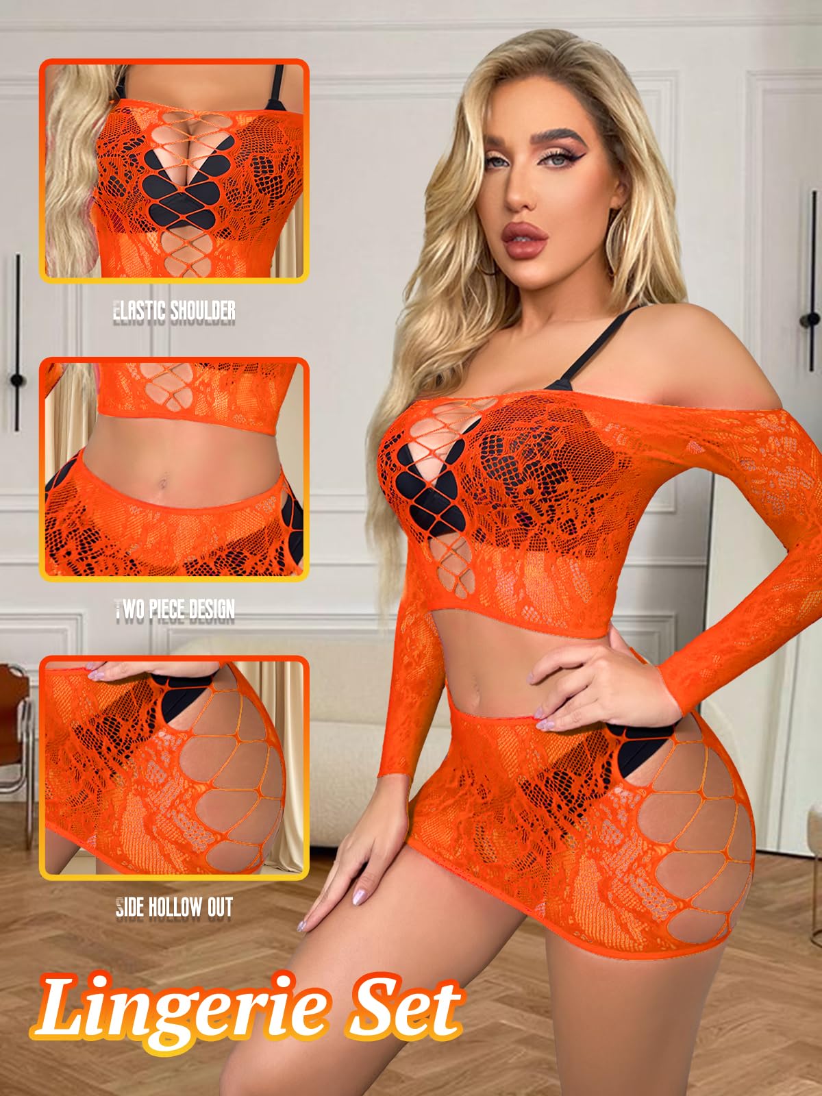 🔥 Lingerie filet sexy en nylon et spandex, extensible et confortable