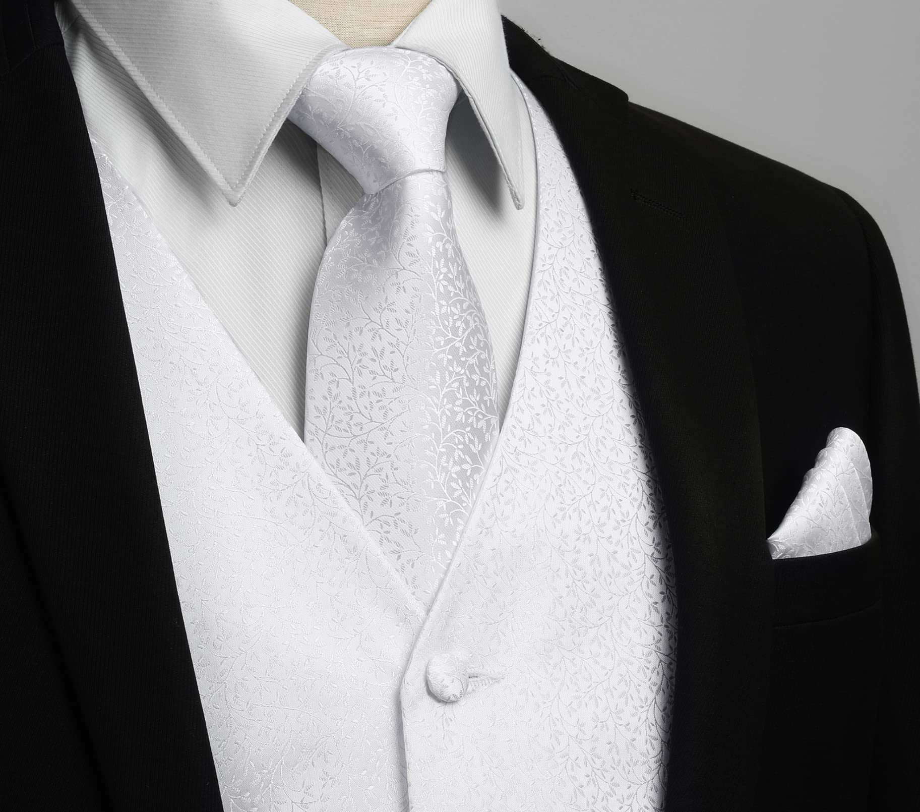 Gilet Homme plus Cravate & Pochette Blanc-1 F
