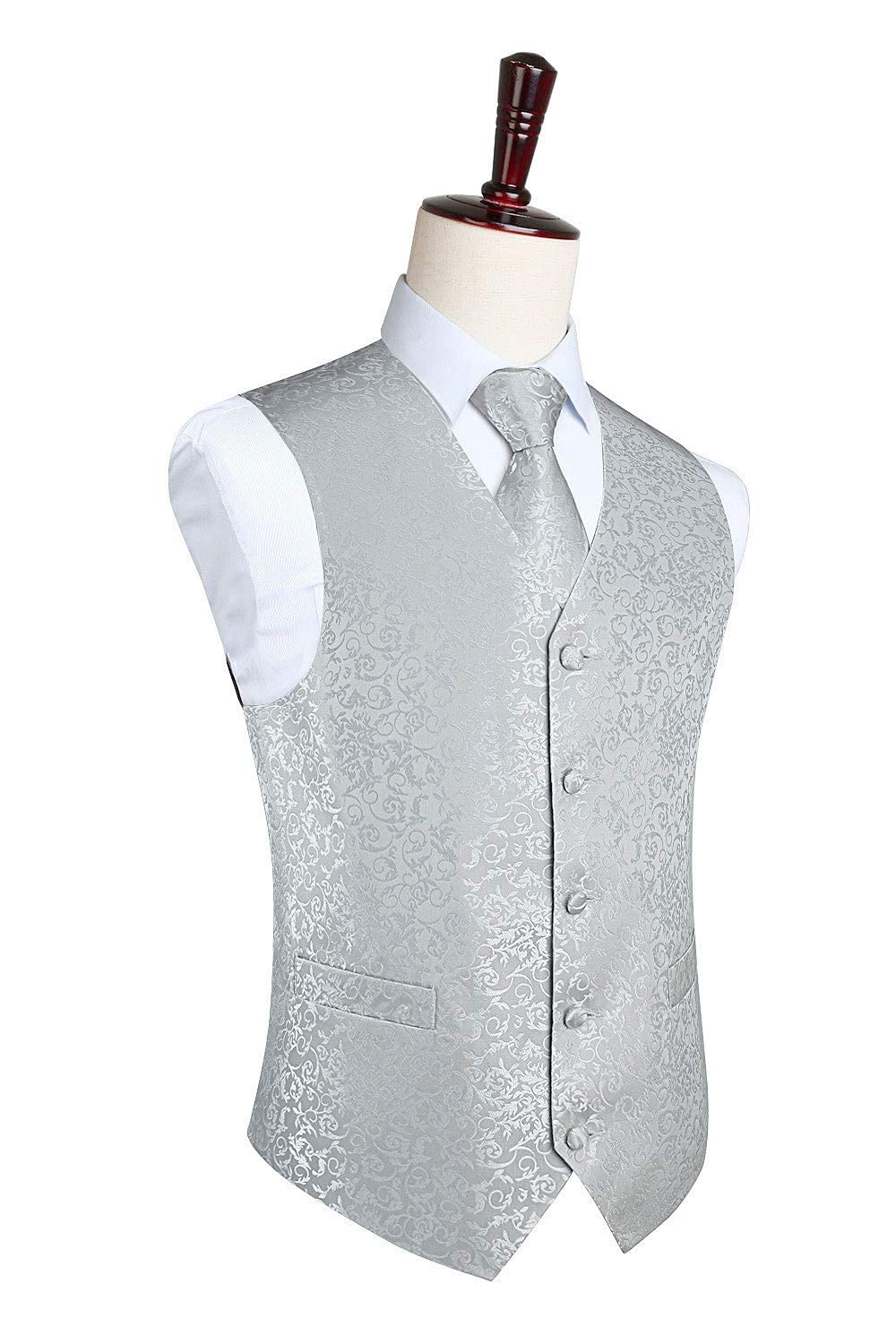 Gilet Homme plus Cravate & Pochette Gris Argente F