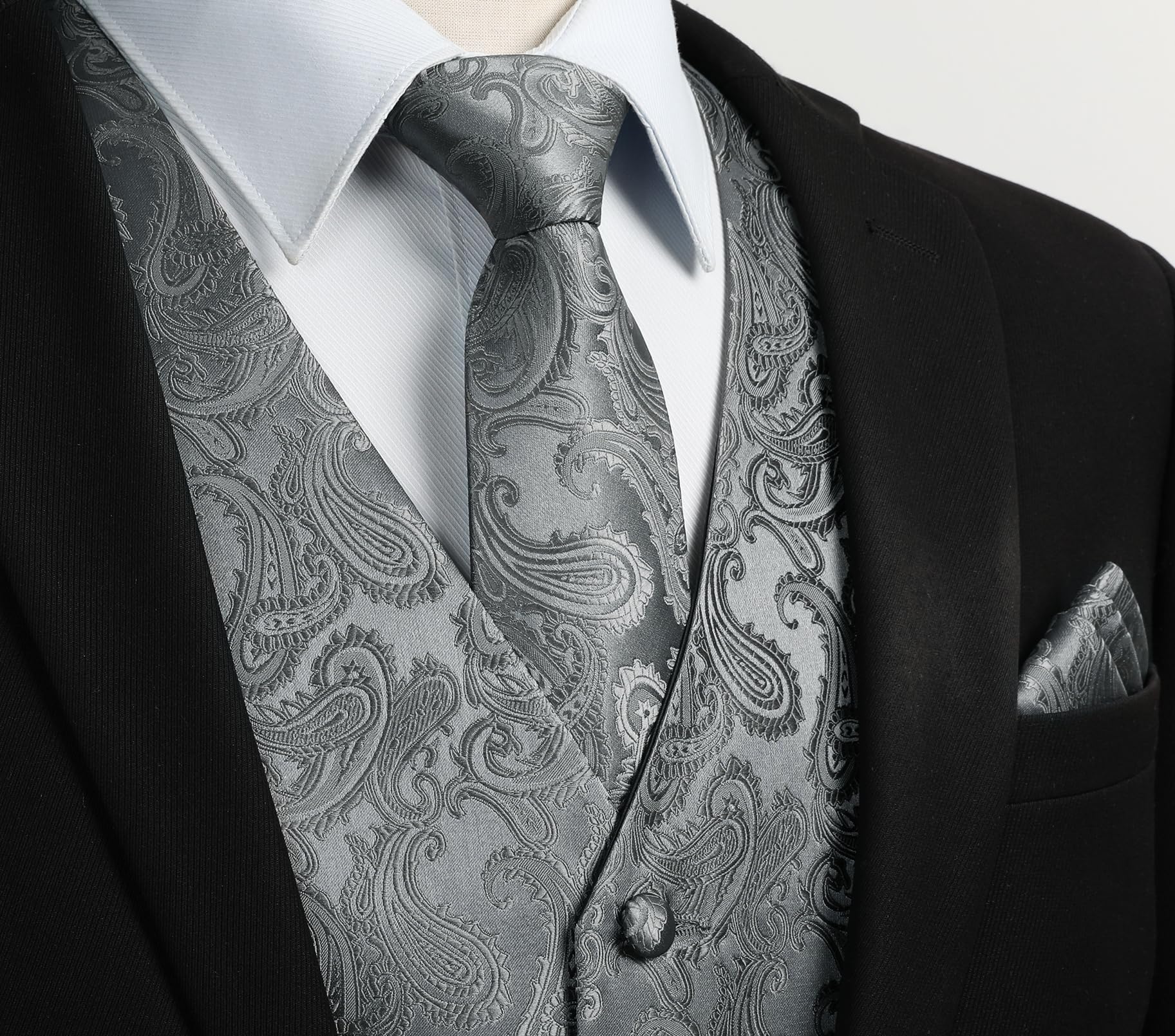 Gilet Homme Jacquard Paisley + Cravate & Pochette – Ensemble Élégant
