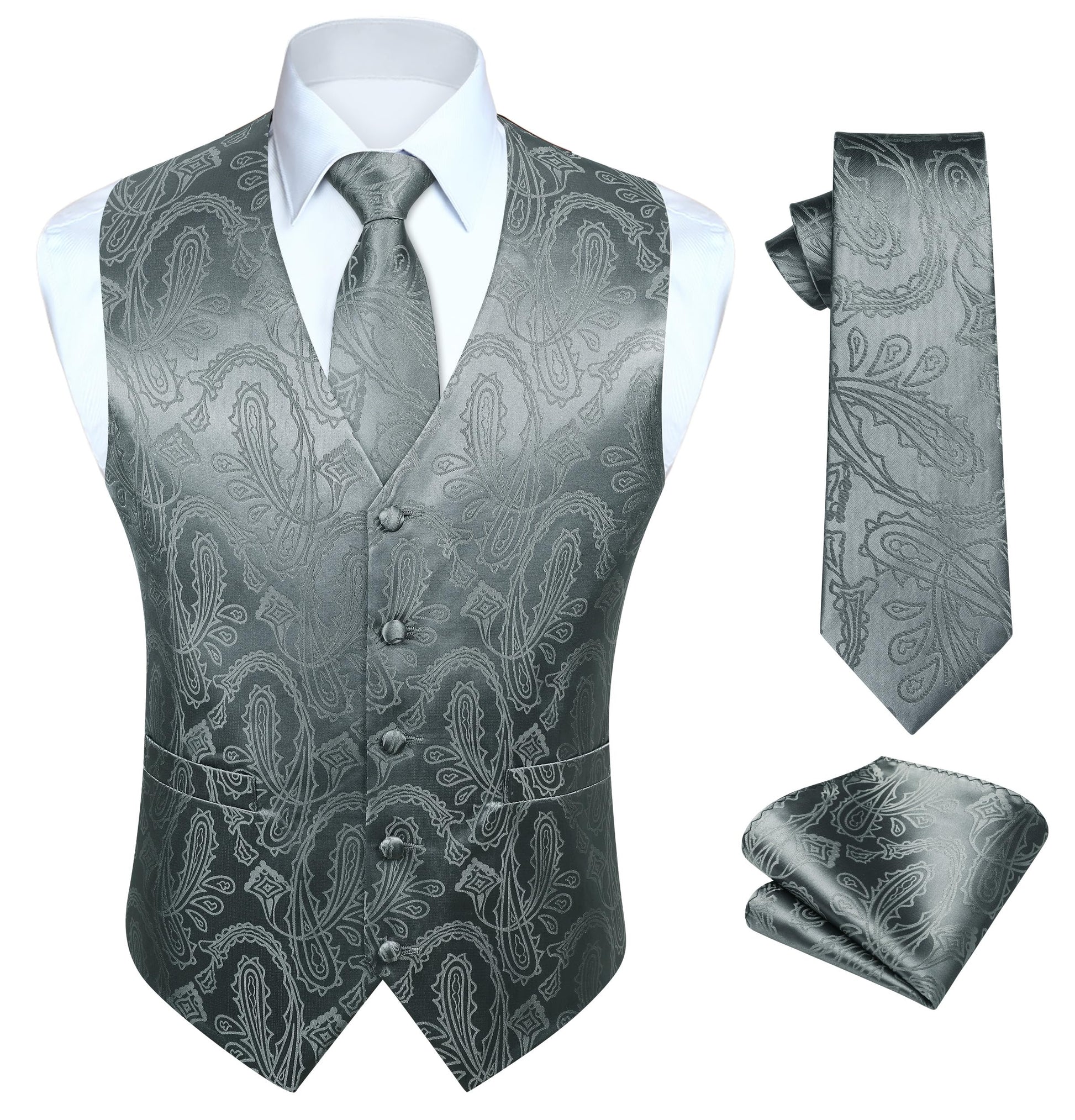 Gilet Homme Jacquard Paisley + Cravate & Pochette – Ensemble Élégant