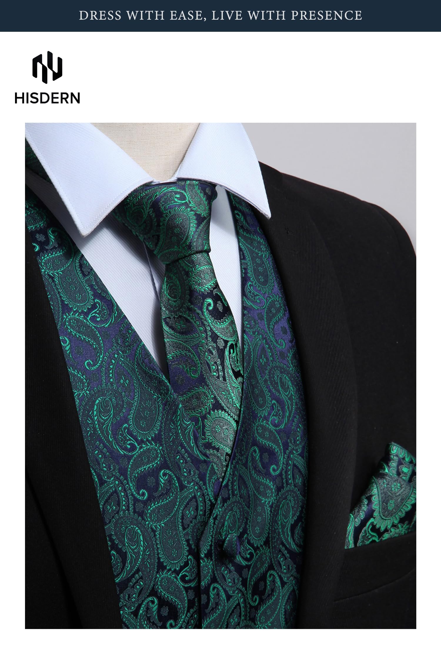 Gilet Homme Jacquard Paisley + Cravate & Pochette – Ensemble Élégant
