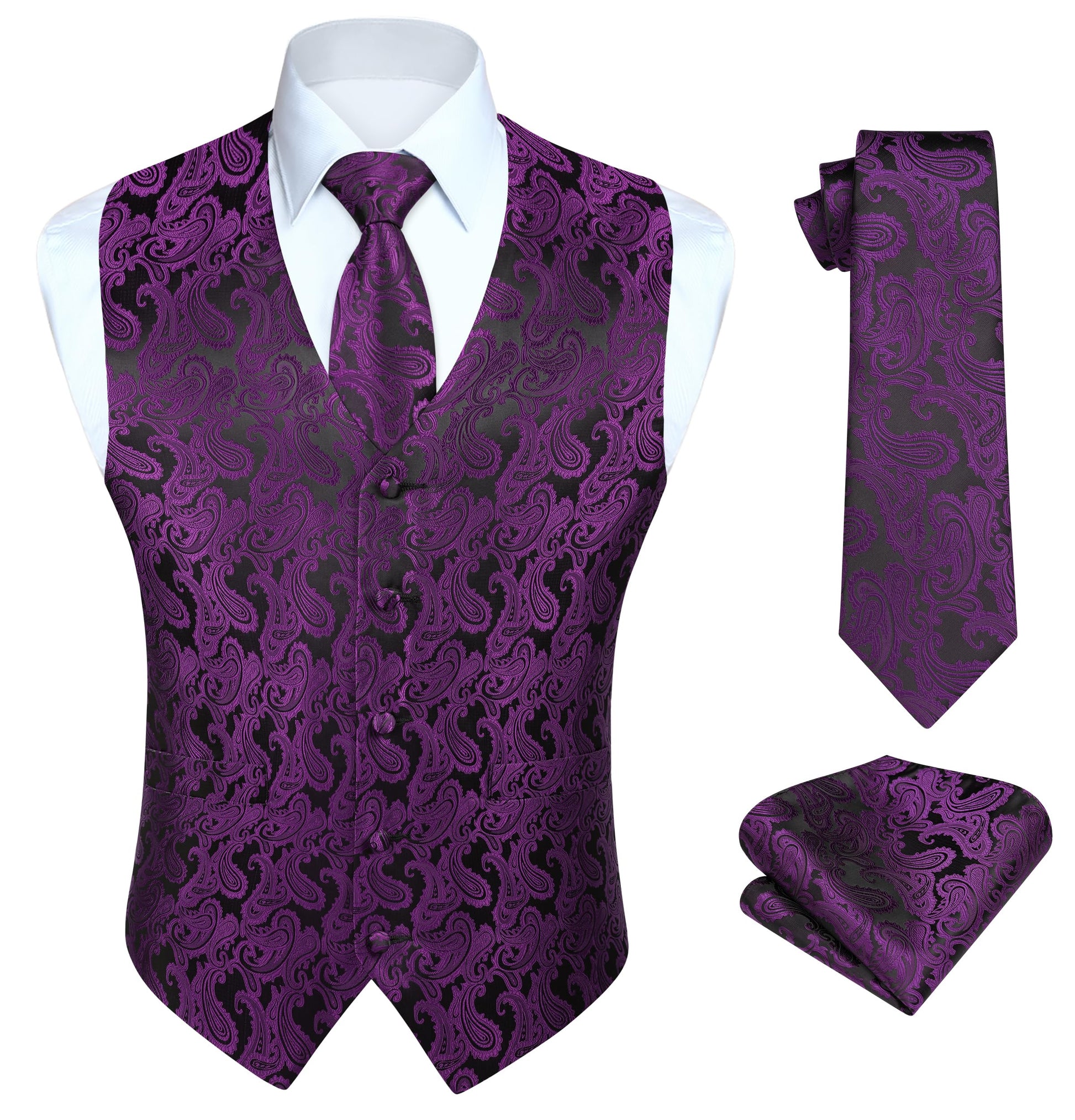 Gilet Homme Jacquard Paisley + Cravate & Pochette – Ensemble Élégant