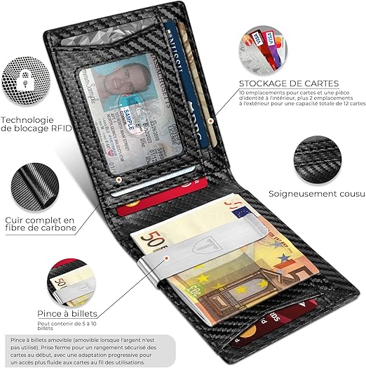 Portefeuille Slim Cuir en Fibre de Carbone avec Blocage RFID F