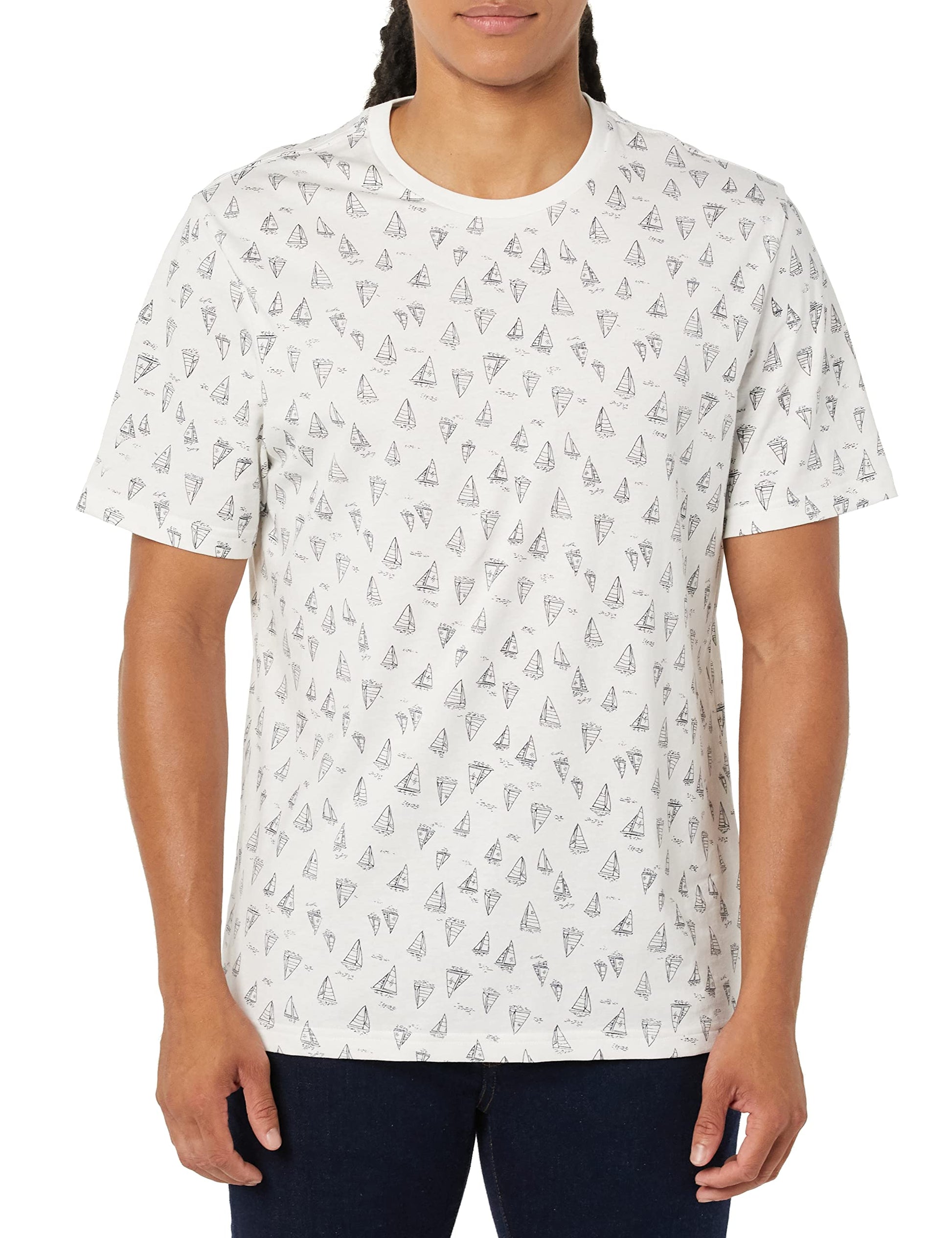 T-shirt Homme Confortable Blanc imprimé Bateaux Bleu Marine I