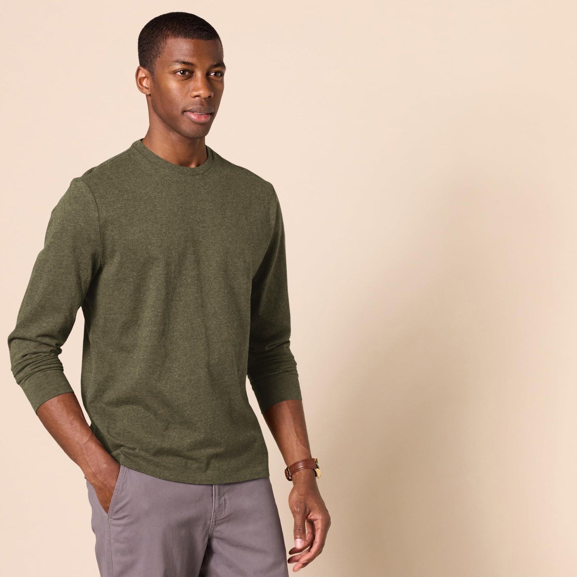 T-Shirt Manches Longues Homme Vert Olive Chiné J